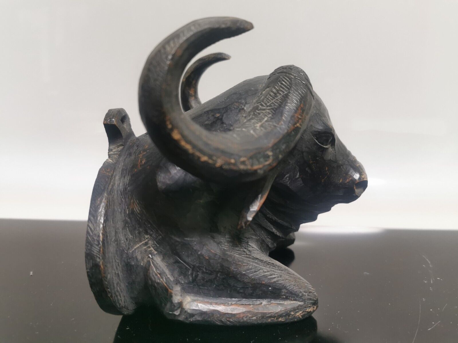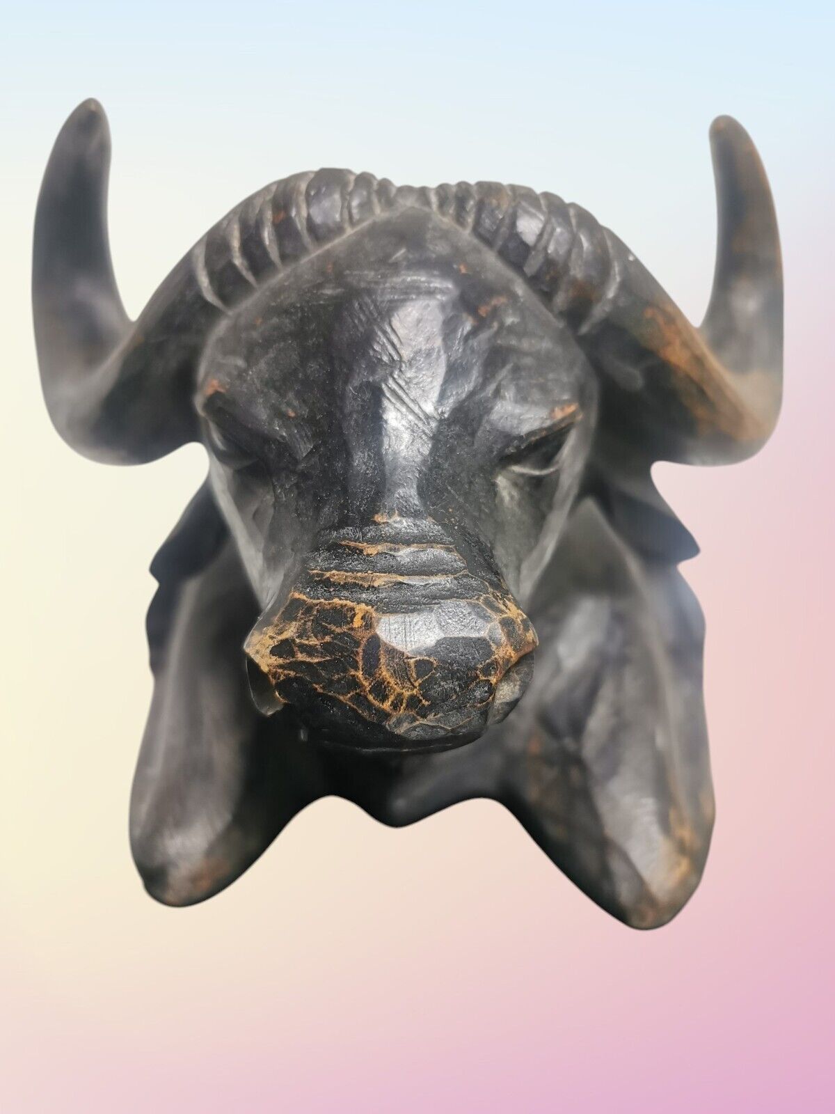 Antique Hand Carved Wooden Buffalo Head Wall Hanging Home Bar Decoration