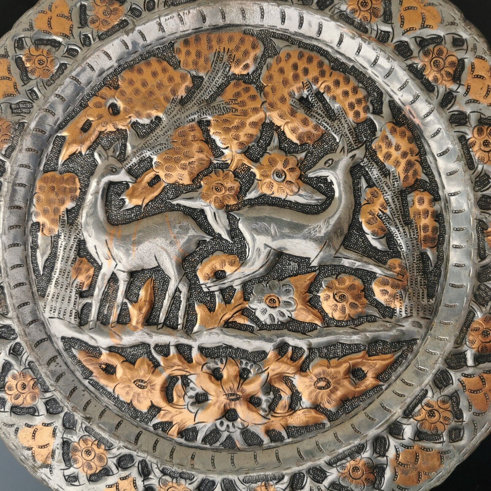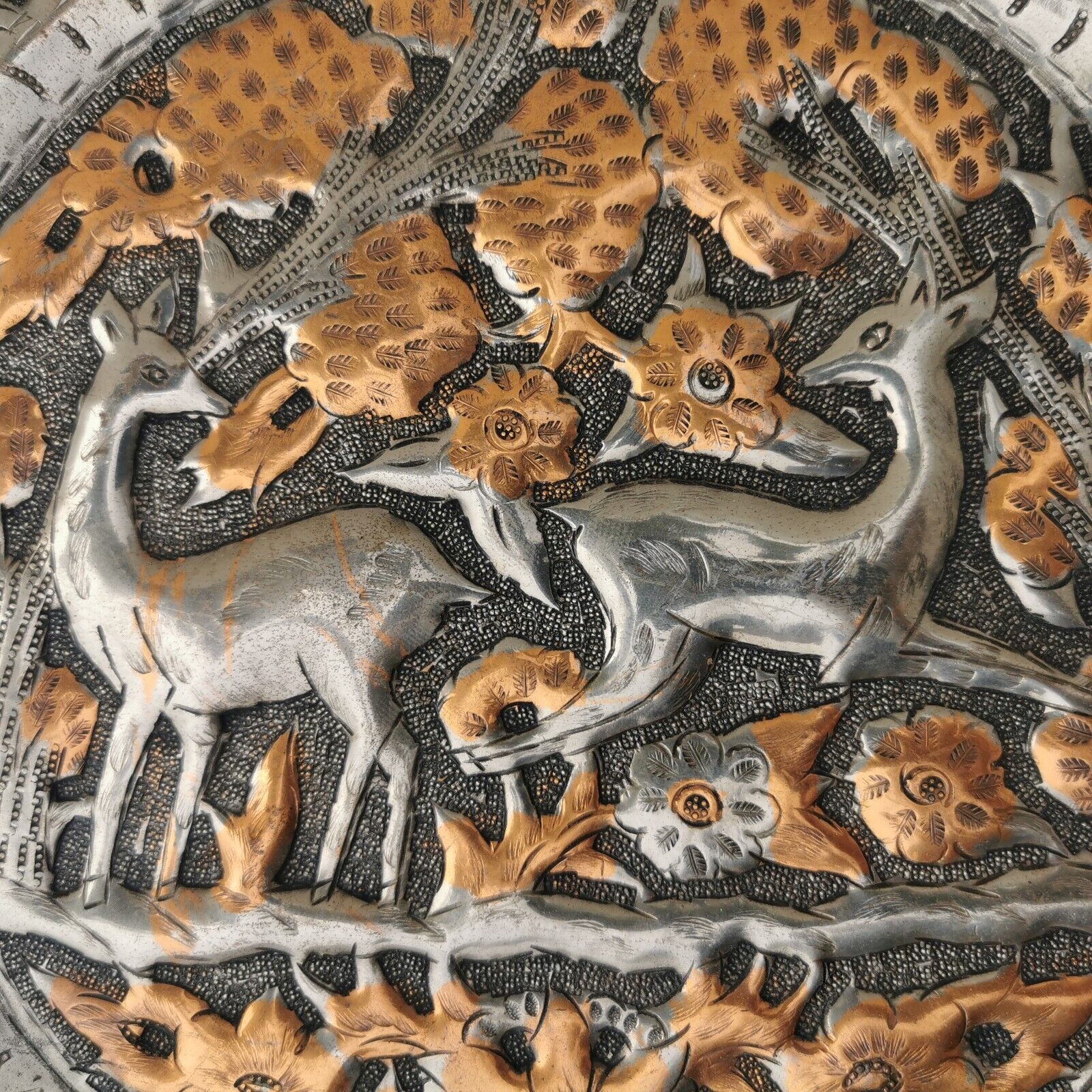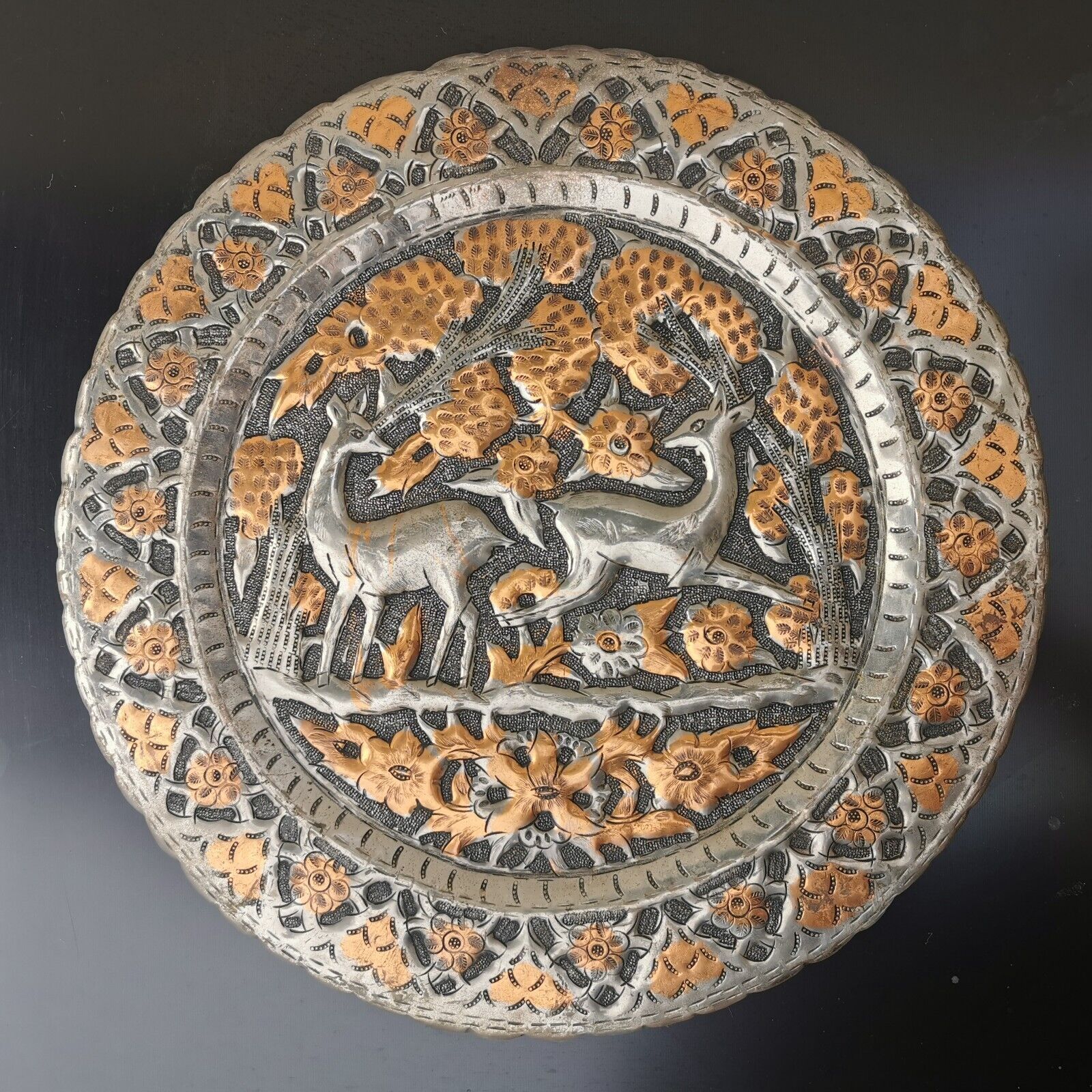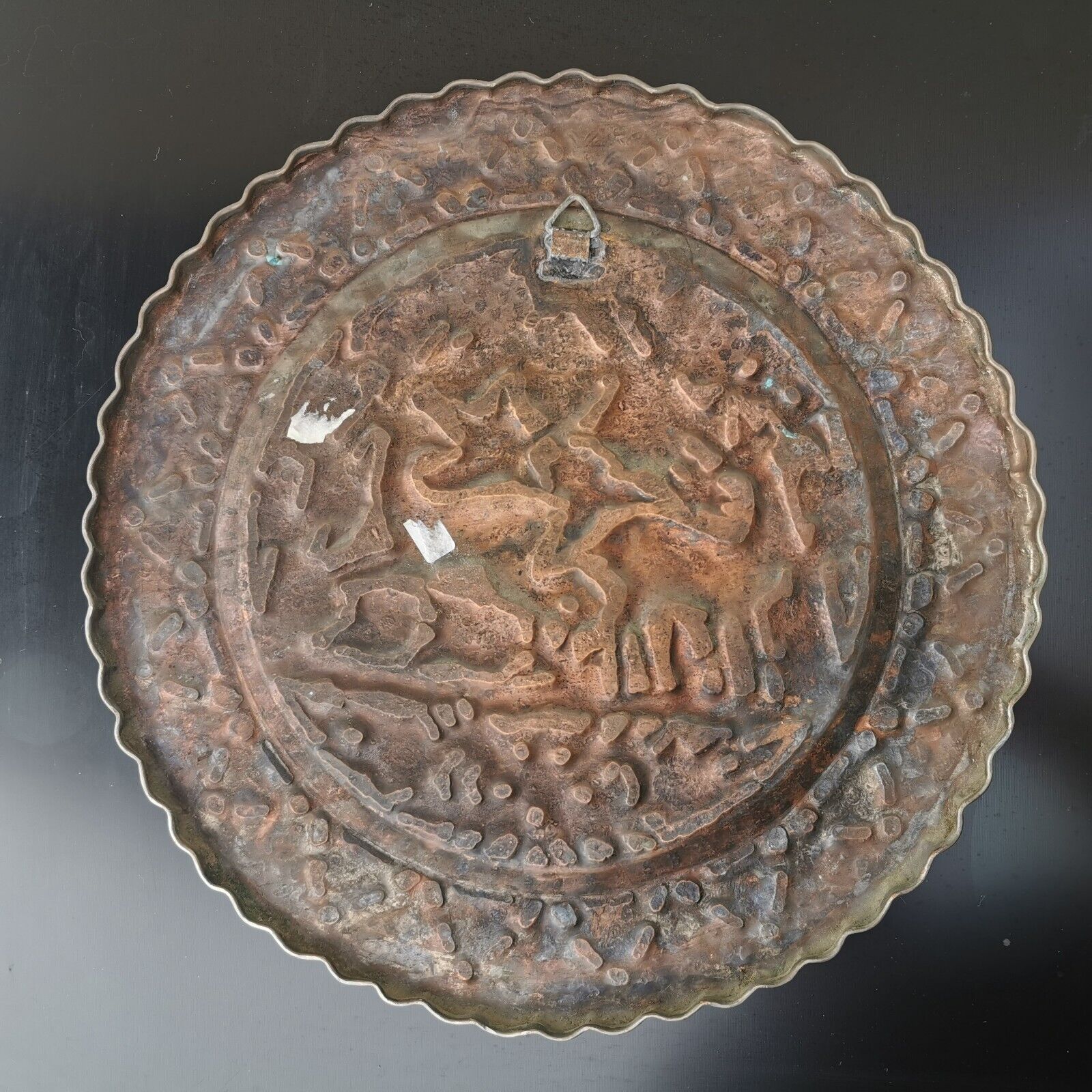 Awesome Vintage Persian Hand Hammered Copper Tinned Wall Hanging Plate Dish Tray