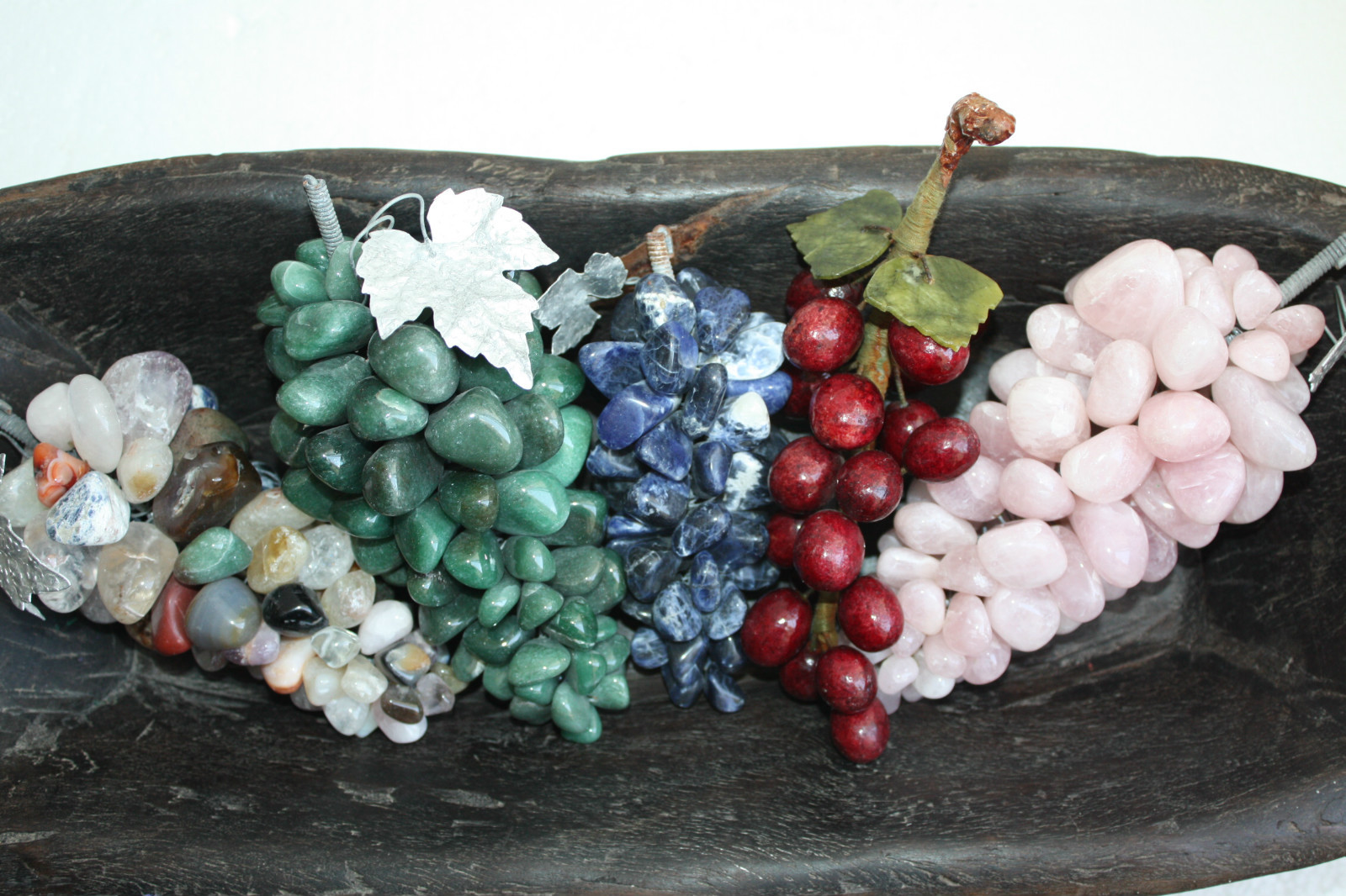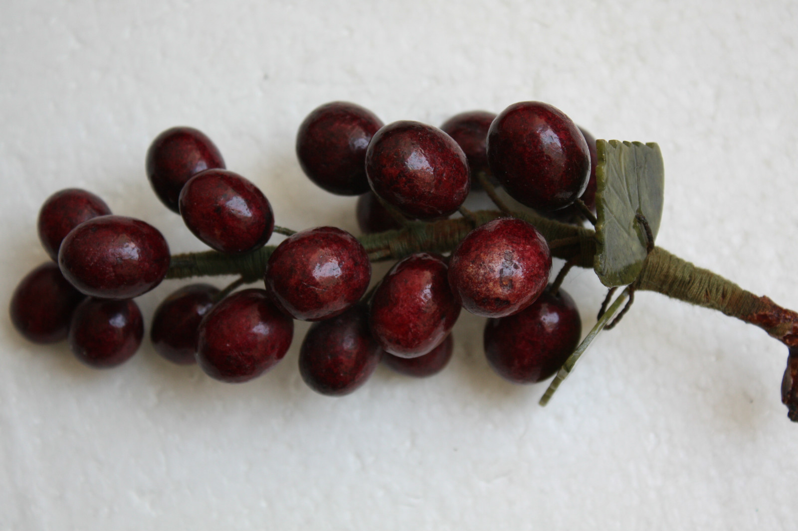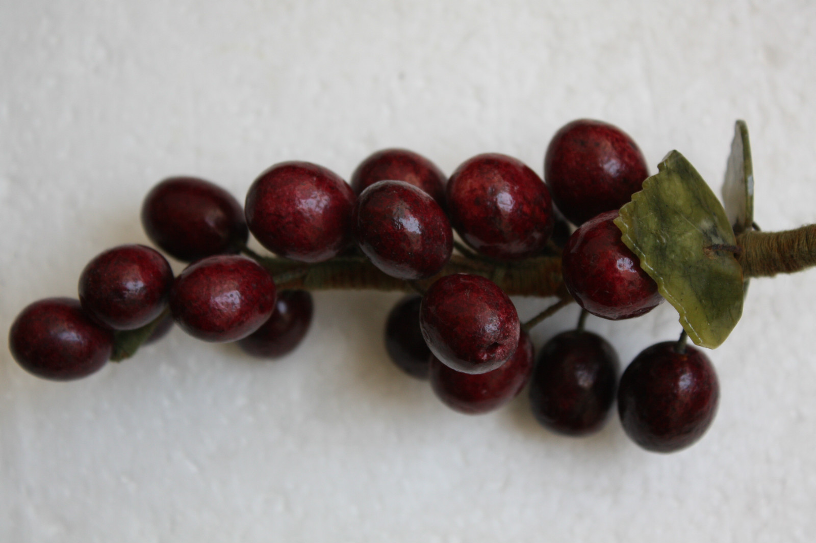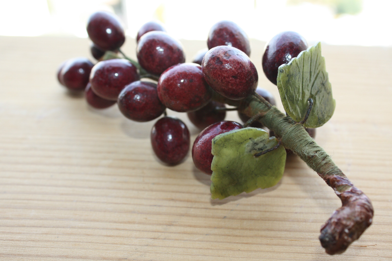 Polished Stone Fruit Sculptures Red Stone Grape Cluster with Jadeite Leaves