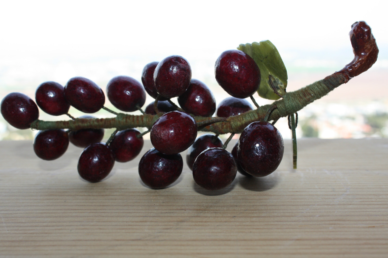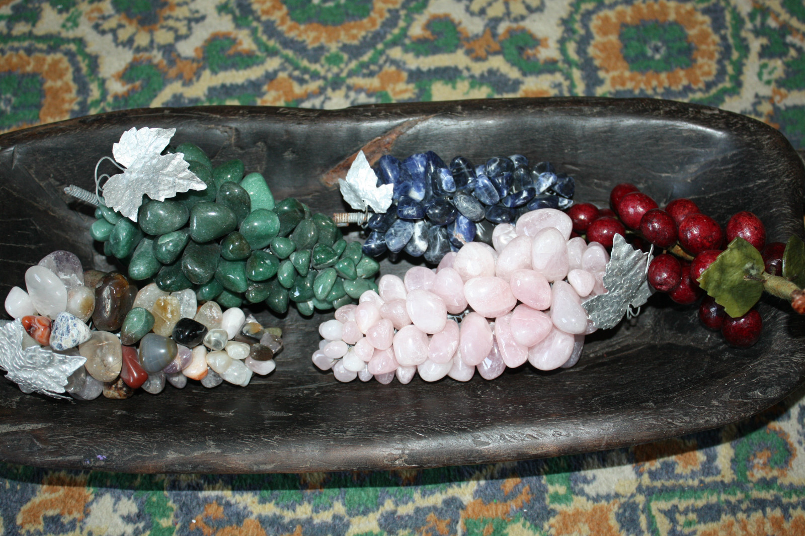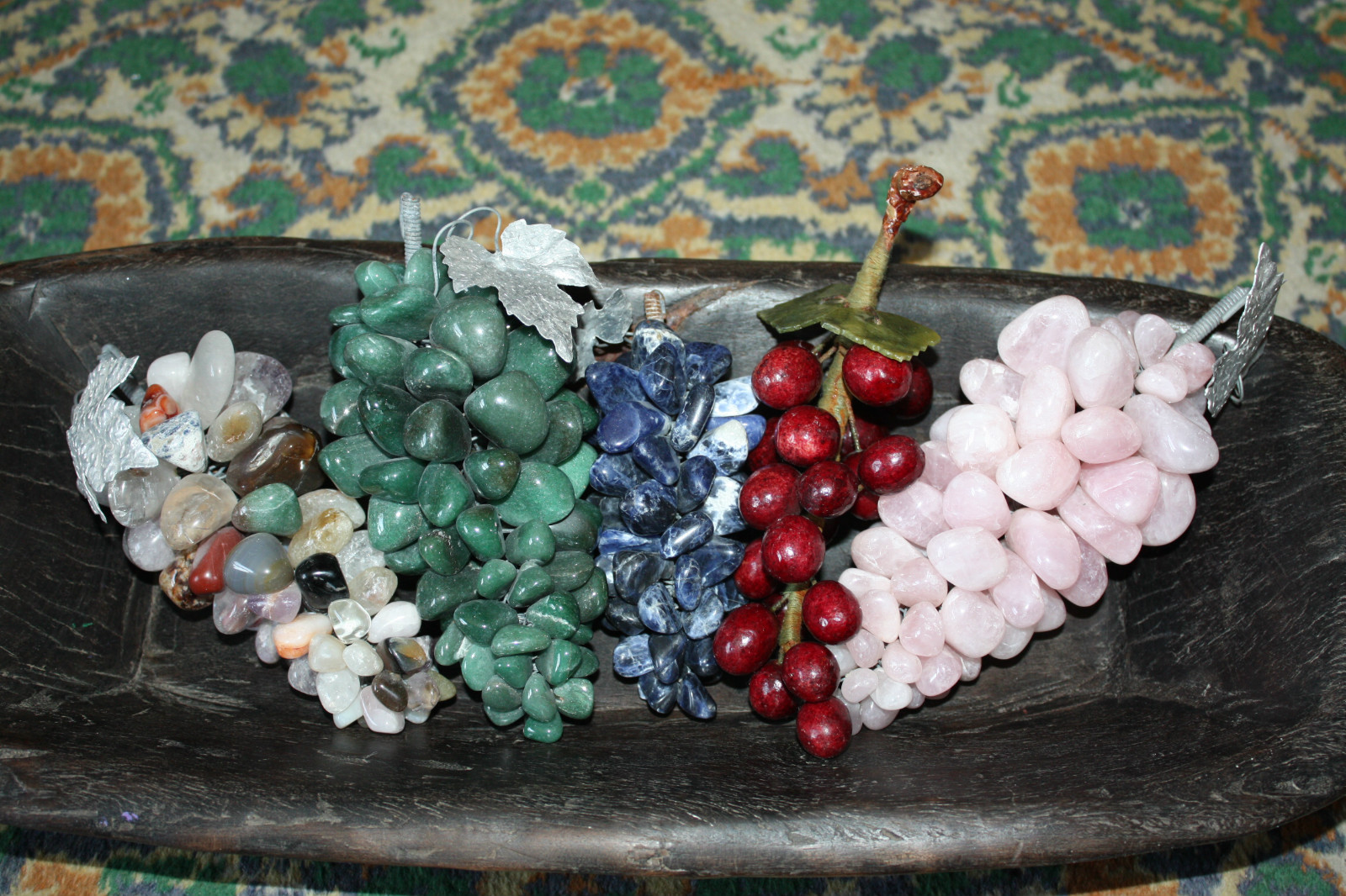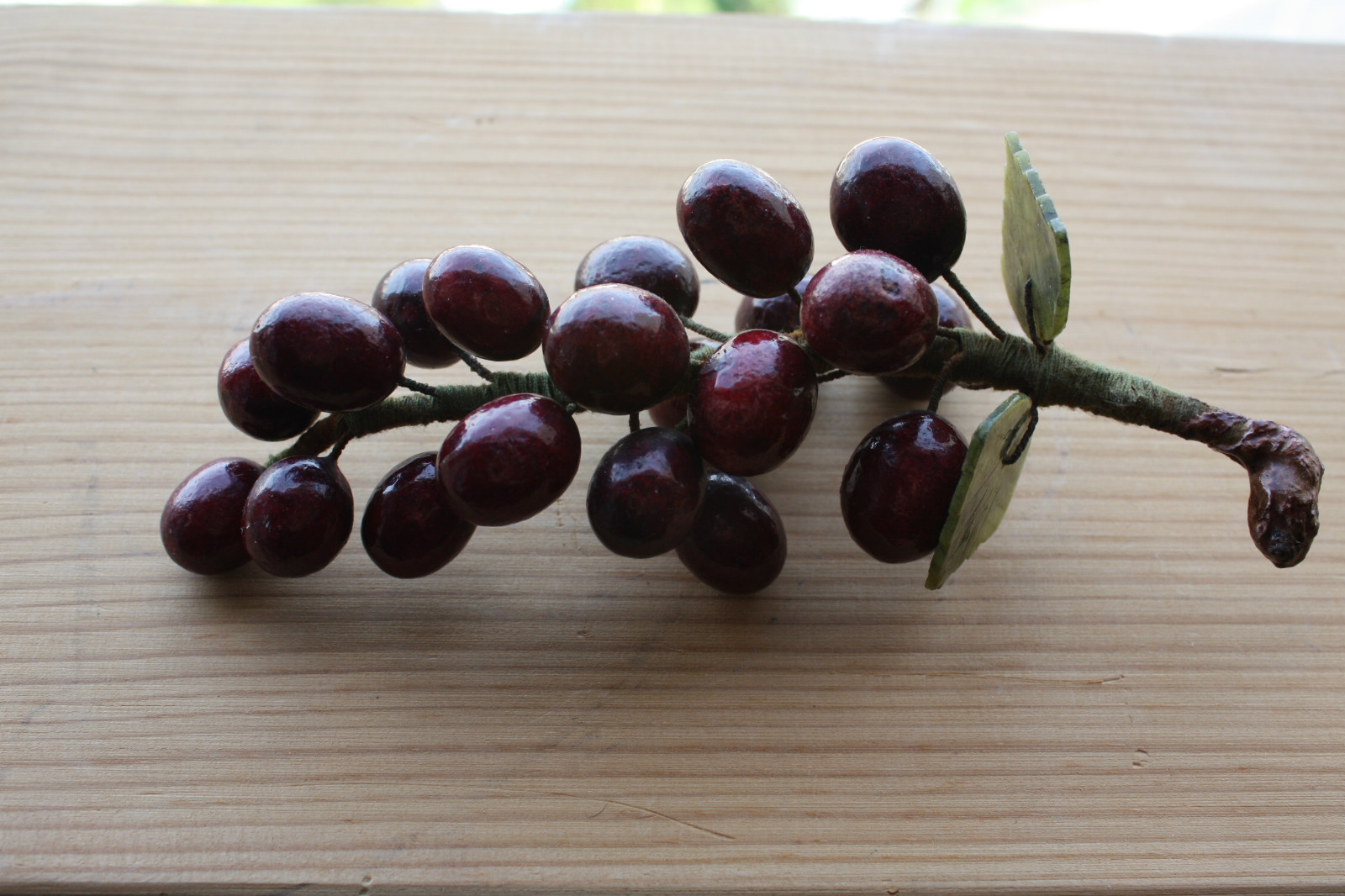 Polished Stone Fruit Sculptures Red Stone Grape Cluster with Jadeite Leaves