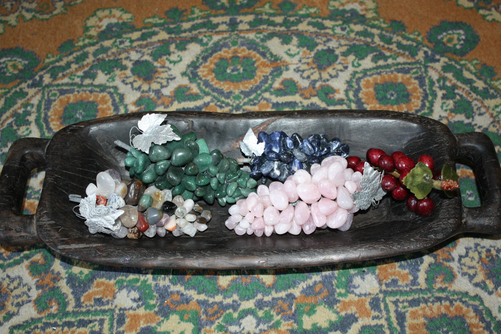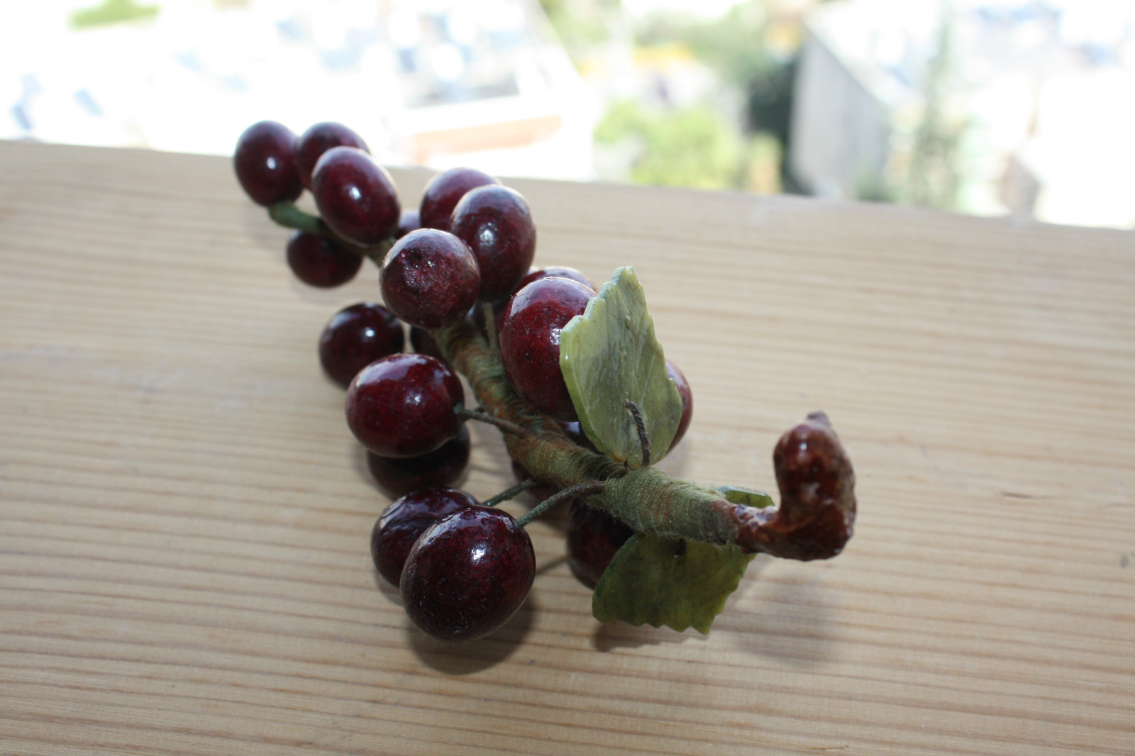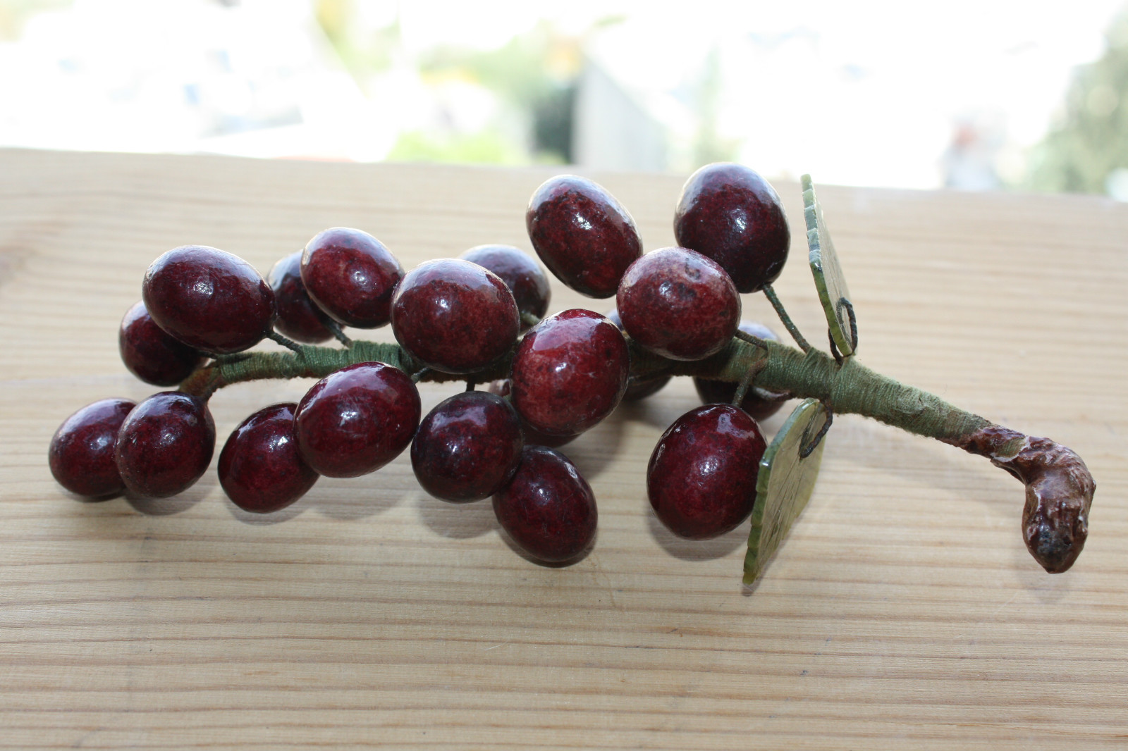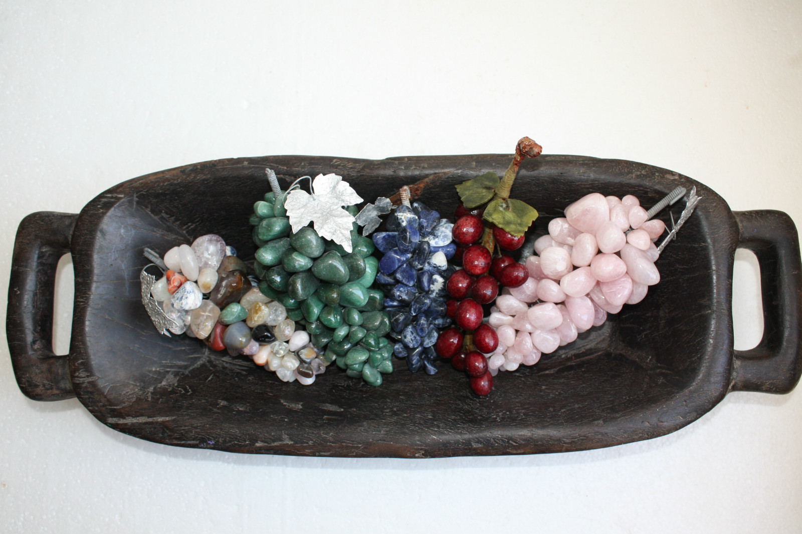 Polished Stone Fruit Sculptures Red Stone Grape Cluster with Jadeite Leaves