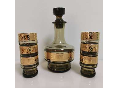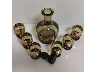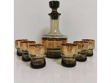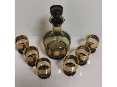Rare Vintage 70's Czech Bohemia Decanter with 6 Shots Soviet Era 24K Gold